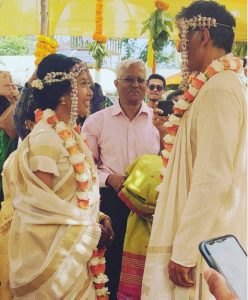 आपको बता दें कि रविवार को मुंबई से सटे अलीबाग में मिलिंद और अंकिता महाराष्ट्रियन-असमिया रीति-रिवाज से परिणय सूत्र में बंधे हैं। वैसे इस बीच मिलिंद सोमन और अंकिता कंवर की कई तस्वीरें सामने आई हैं, जिसमें मेहंदी, संगीत और हल्दी की तस्वीरें जहां शनिवार सुबह सोशल मीडिया पर वायरल हुई थीं.. वहीं अब इस जोड़े की की शादी के बाद मंडप से पहली तस्वीर सामने आई है, जिसे फोटोग्राफर अंजू केपी ने फोटो शेयर की है। शादी के इन तस्वीरों में दुल्हा-दुल्हन के रूप में मिलिंद और अंकिता दोनो ही पूरे पारम्परिक वेश-भूषा में नजर रहे हैं.. मिलिंद ने जहां क्रीम कलर का कुर्ता और धोती पहनी रखी है, वहीं, अंकिता क्रीम कलर की पारंपरिक मराठी साड़ी में बेहद सुंदर दिख रही हैं।